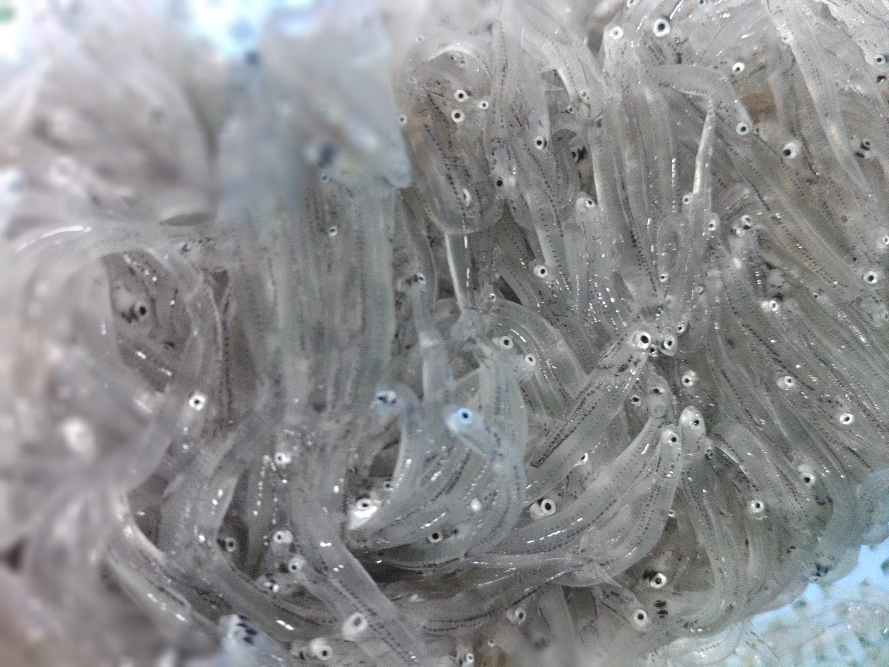しらすは明るくなると群れだしてきて
